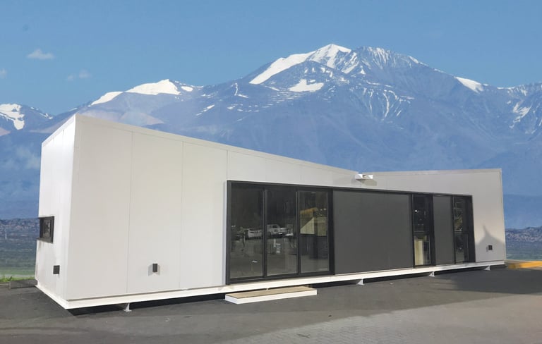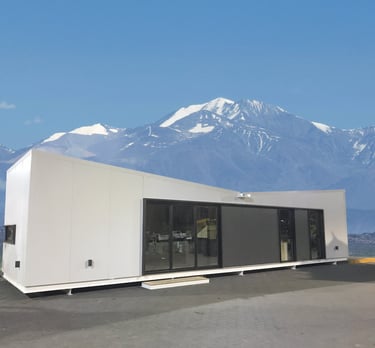 Proceso de fabricación y montaje junto a Campamentos SRL de la escuela técnica MODULAR Ingeniero Izsaky en el Departamento de Malargüe, Sur de la Provincia Mendoza, para la Dirección General de Escuela, Gobierno de Mendoza.